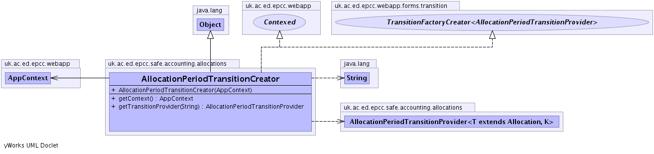 public class AllocationPeriodTransitionCreator extends java.lang.Object implements uk.ac.ed.epcc.webapp.Contexed, uk.ac.ed.epcc.webapp.forms.transition.TransitionFactoryCreator<AllocationPeriodTransitionProvider>