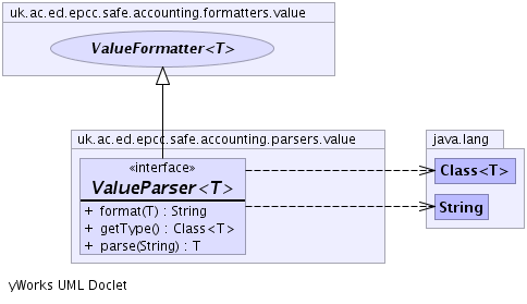 ValueParser's typegetType in interface ValueFormatter<T>ValueParserT parse(java.lang.String valueString) throws ValueParseException